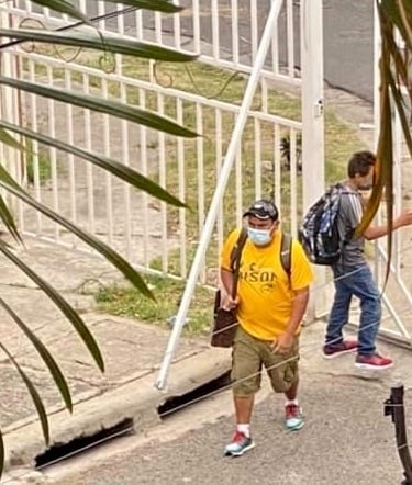 Se llama Roberto y camina un largo trecho junto a su hijo para poder llevar sustento a casa ...