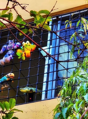 No sé quién esté detrás de esa ventana, quién será la persona que con tanta delicadeza, esmero y paciencia; la embellece,cuida y adorna, colgando entre sus brazos hermosos muñecos que a diario brindan una esperanza.